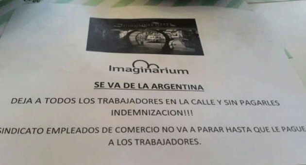 Un grupo de trabajadores y referentes sindicales se manifestaron en el tercer piso del lugar para denunciar que la empresa cierra sus locales y se va del país sin pagar las indemnizaciones correspondientes.