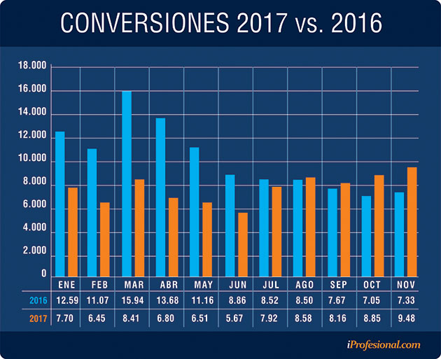 El siguiente cuadro permite ver cómo las conversiones se desplomaron a partir del año pasado: