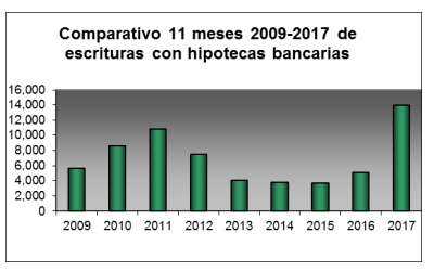En los primeros 11 meses de 2017 se efectivizaron 55.520 actos escriturales de compraventa de inmuebles: aumentaron 43,2% en comparación con similar perí­odo del año anterior. El monto de las transacciones se elevó 103,5%, a $128.899 millones.