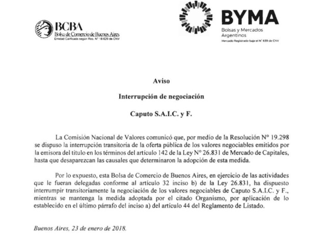 Por qué suspendieron a Caputo S.A. en la Bolsa de Comercio