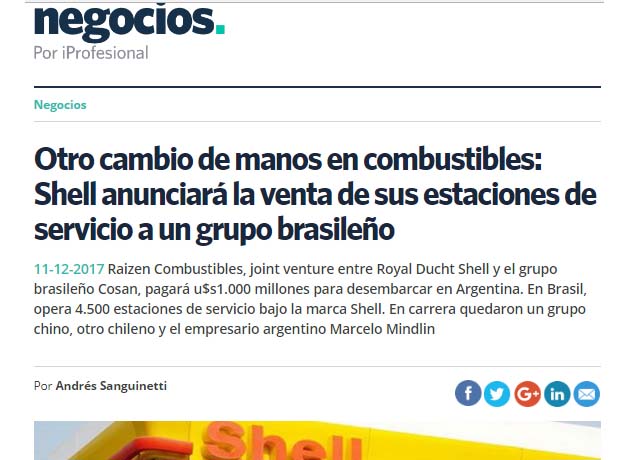 Tal como adelantó iProfesional, Shell firmó este martes un acuerdo por la venta de su negocio de downstream en Argentina a la brasileña Raízen por u$s950 millones.
