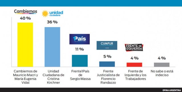 "El escenario no ofrece modificaciones y la ventaja para Cambiemos se consolida en un 4%, que está en la misma línea que los números de agosto", agregó.