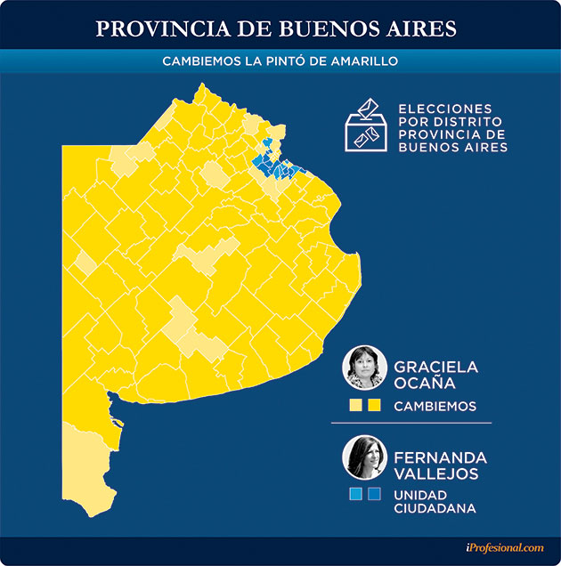 En Diputados, la referente de Cambiemos, Graciela Ocaña, obtiene el 42% de los sufragios, seguida por Fernanda Vallejos (Unidad Ciudadana), con el 36,24% y Felipe Solá (1País), con el 11%.