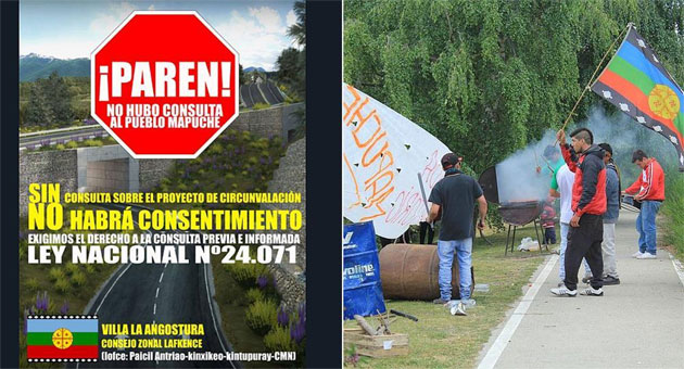 Horas después de la llegada del presidente Mauricio Macri a Villa La Angostura, la Confederación Mapuche de Neuquén mantiene sus protestas.