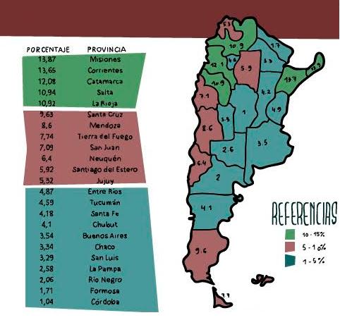 En contrapartida, Córdoba (1,04), Formosa (1,71%) y Río Negro (2,06%) son las provincias que cuentan con menor porcentaje de sus tierras en manos de capitales de personas oriundas de otros países.