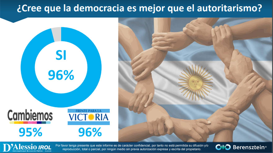 De acuerdo al estudio, hay una preferencia casi total de los argentinos por el sistema democrático.
