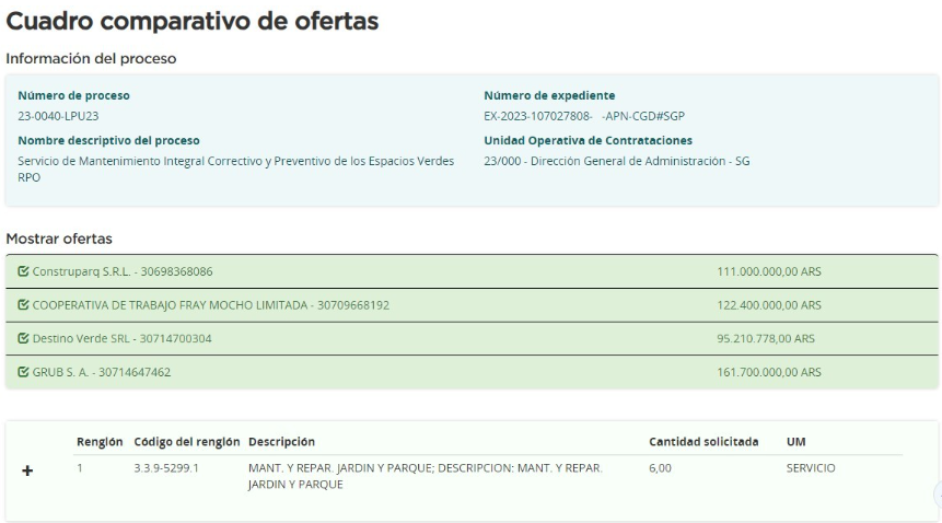 - Construparq SRL cotizó $111 millones.