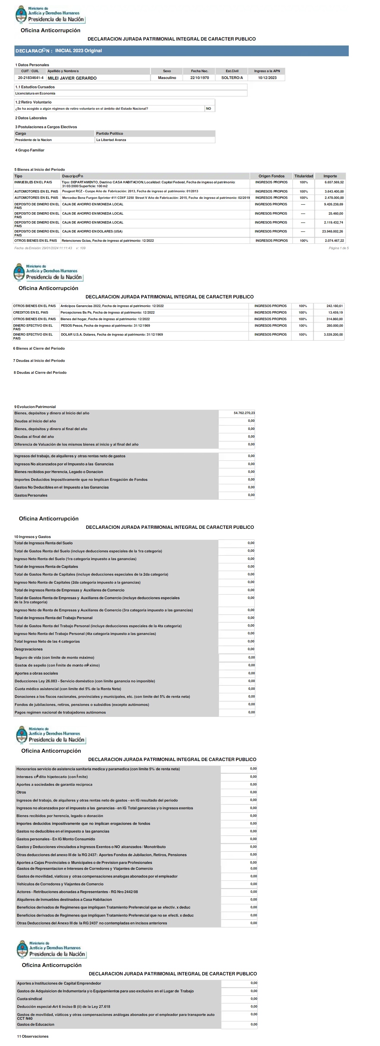 Por lo pronto, Milei es uno de los funcionarios que ha declaron un patrimonio menor si se compara con los integrantes del Gobierno, y ese sería todo su capital.