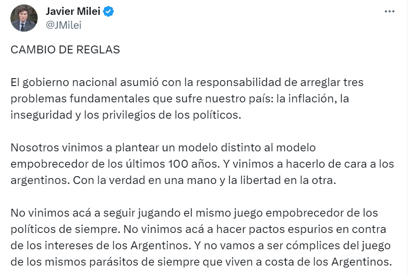 Pero hay otros elementos que justifican el encono de Milei. Ya apareció una pista al respecto en su carta pública del 9 de febrero titulada "Cambio de Reglas", donde anunció que iba a "exponer ante la sociedad" a los políticos que se mostraran poco colaborativos con la agenda reformista del gobierno. Y que, en caso de obstaculizar los cambios, serían denunciados por "sus negociados, privilegios y corrupción".