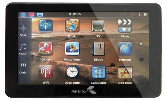La Tablet PC 7 de Ken Brown Funciona bajo sistema Android Gingerbread y tiene conectividad interfaz inalámbrica WI-FI 800.11b/g. Su capacidad de almacenamiento llega a los 4 GB, expandible por tarjeta a 32 GB.