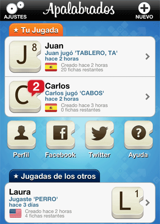 “Apalabrados” es un juego de palabras multijugador, similar al “Scrabble”, que no requiere que ambos jugadores estén conectados simultáneamente. Así pueden reanudar la partida en cualquier momento.