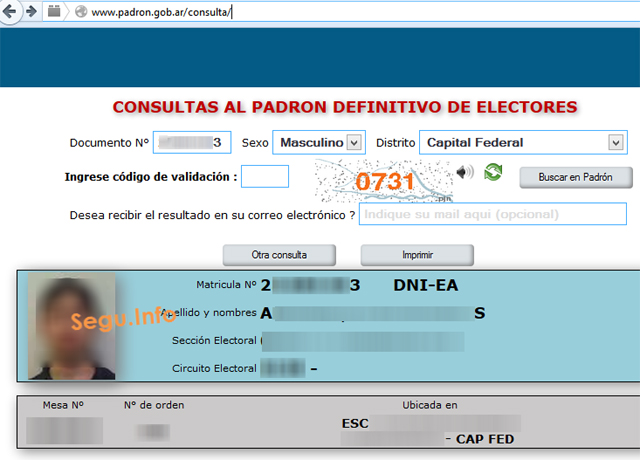 La consulta al padrón fue sacada de línea inmediatamente después de haber finalizado el acto electoral, pero el problema continúa ya que no se deshabilita el directorio http://padron.gob.ar/fotos/...