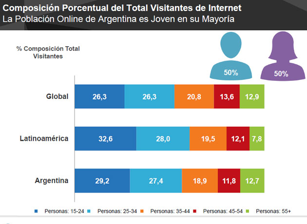 comScore resaltó en su informe a la Argentina por su actividad en redes sociales. El país se encuentra entre los tres mercados más involucrados del mundo con estas plataformas, con un promedio de 9,1 horas por visitante al mes, sólo por detrás de Brasil (13,1 horas) y de Italia (9,5 horas), y muy por encima de las promedio globales (5,4 horas).