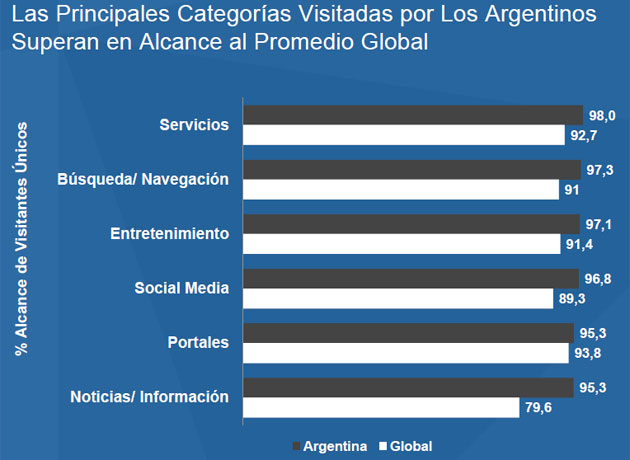 Además, las principales categorías visitadas por los argentinos superan en alcance al promedio global: