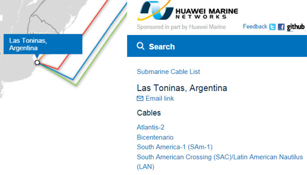 Según el sitio especializado Telegeography, sólo están operativos los de Level 3, Telefónica, Atlantis 2 y Antel.