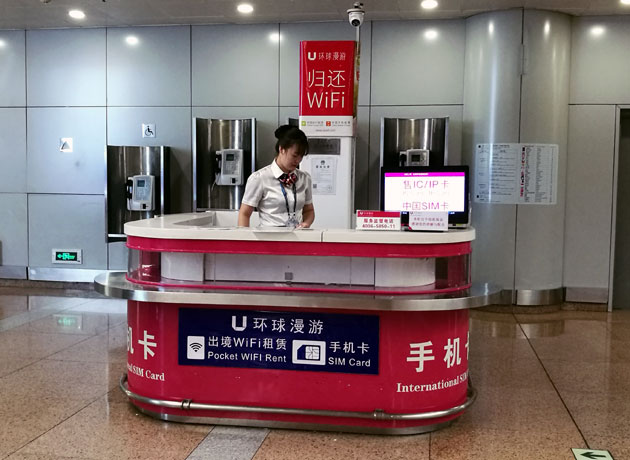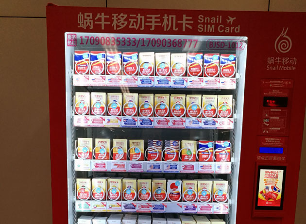 En los aeropuertos chinos que reciben vuelos del exterior, hay máquinas cerca de las mangas de retiro de equipajes que despachan tarjetas SIM de operadores locales con paquetes de datos.