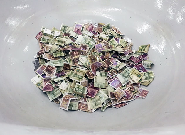 En algunos restaurantes, los clientes dejan sus billetes en un tazón gigante a modo de ofrenda a una divinidad, que luego es levantada por los dueños del local.
