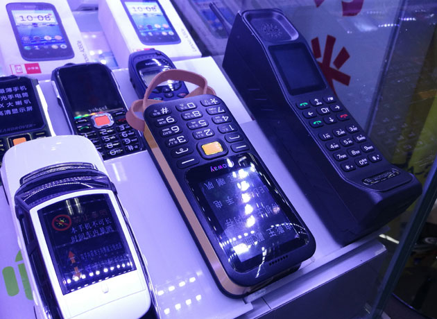 Incluso móviles históricos como el famoso Motorola Dynatac (primero desde la derecha en la foto).