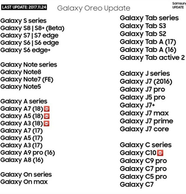 La empresa había adelantado que los nuevos Samsung Galaxy A3, A5 y A7 del 2018 Y C10 que serían presentados durante el Mobile World Congress en febrero en la ciudad catalana de Barcelona no llegarán con Android Oreo, pero sí actualizarán a esta nueva versión en algún momento.