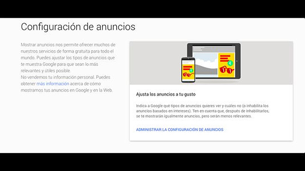 En esta ocasión lo que interesa es la opción "Configuración de anuncios".