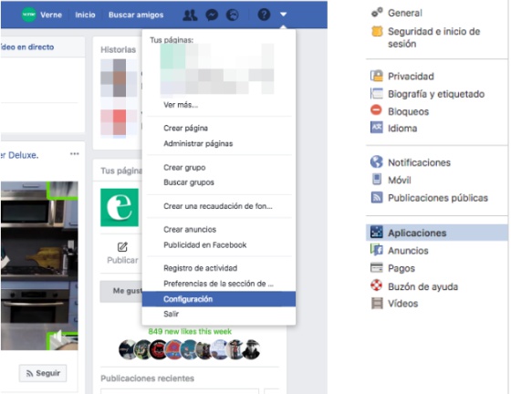 Para hacer algo de limpieza, entra en la página de Aplicaciones de Facebook en el menú de opciones y podrás ver cuántas aplicaciones tienes conectadas a tu cuenta.