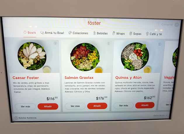 Allí puede elegir entre un menú variado de comidas rápidas y nutritivo, como bowls de estación, wraps, sopas, jugos naturales, aguas saborizadas y opciones dulces y pagar de manera autónoma en pocos segundos gracias a una implementación realizada por Mercado Pago.