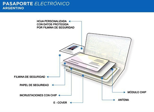 Se trata de una banda que bordea la contratapa del documento por dentro. "La antena junto al chip que llevan los pasaportes en su interior son los elementos que permiten que el documento internacional sea electrónico. Allí­ se almacenan los datos biométricos y biográficos de cada ciudadano", explicaron al diario porteño Clarí­n fuentes del Ministerio del Interior.