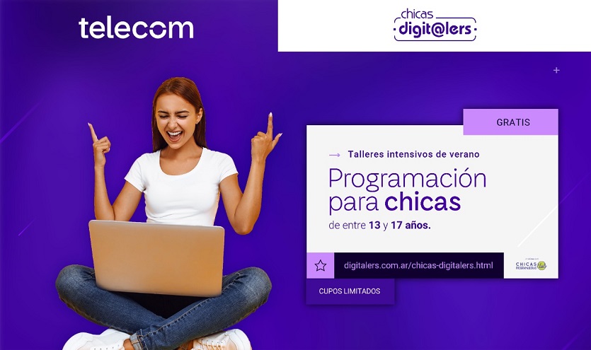 Complementa esta iniciativa, el programa de formación "Chicas digit@lers", exclusivo para jóvenes mujeres de 13 a 17 años, a quienes invita a pensar su futuro profesional en carreras orientadas a tecnología; este año con más de 240 alumnas egresadas. Este programa también continuó promoviendo el ciclo de charlas gratuitas y abiertas a la comunidad "Mujeres digit@lers", un espacio donde colaboradoras de Telecom comparten su experiencia dentro de la industria TIC, en una charla amena y descontracturada moderada por Marina Abiuso, periodista especializada en género.